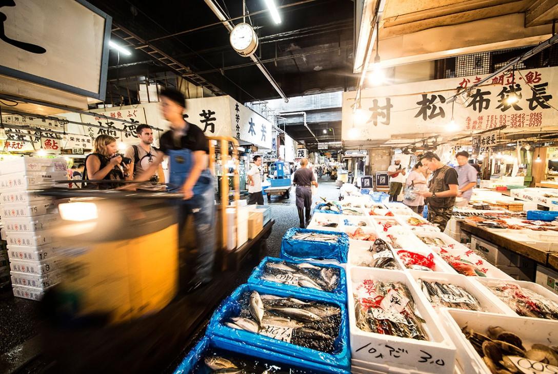 筑地市场建于1935年,已有80多年的历史。东京的筑地市场是世界上最大的水产市场之一,更是东京吃寿司和刺身性价比最高的地方,同时也被当地的日本人民乘坐"东京的食堂"。而这里最大的亮点是清晨开市的"金枪鱼拍卖",每日只开放限人数的观看名额,想一睹拍卖盛况的话要凌晨前往排队等候。而旁边的商店街则称为场外市场,集中了各色日料店、海鲜店、蔬果店等。